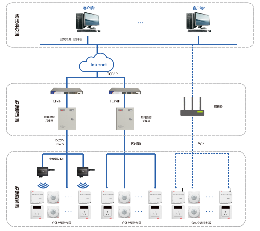 适用于学校、医院、政府办公楼、办公场所、连锁酒店等分体空调应用场所。