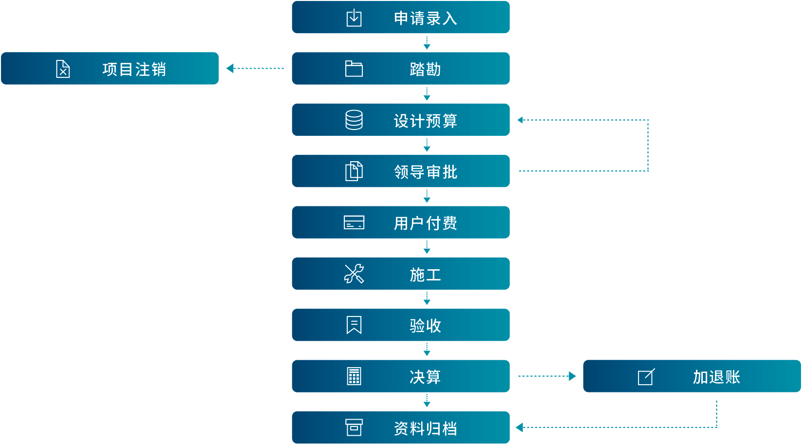 报装管理服务系统将安装、检查、付费、售后一系列报装数据打通,形成立体综合工作平台。只需要填一张表格,便可由系统设置好的流程逐层逐级推进,每个层级都可以看到流程当下的进度,极大提高了管理效率和服务质量,是企业信息化管理的重要组成部分。