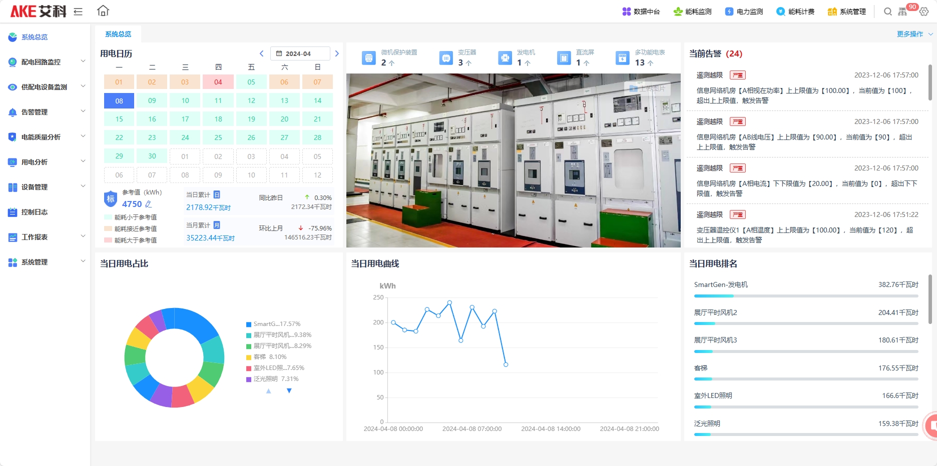 基于智能设备实时监测变配电系统运维状态,实现全方位的智能监测、智能化故障预警、便捷化运行管理、全面的电能质量监测与分析。系统主要是对用户变配电站正常运行和事故状态进行实时监控,实现遥测、遥信、遥控功能;系统支持报表打印功能,越限和事故报警功能,事故追忆、生成用电报告、谐波分析、三相不平衡分析等功能,可进行数据采集与处理,完成配电自动化控制功能,传送远动信号与数据,接收调度遥控命令,以及其它一些运行管理功能。