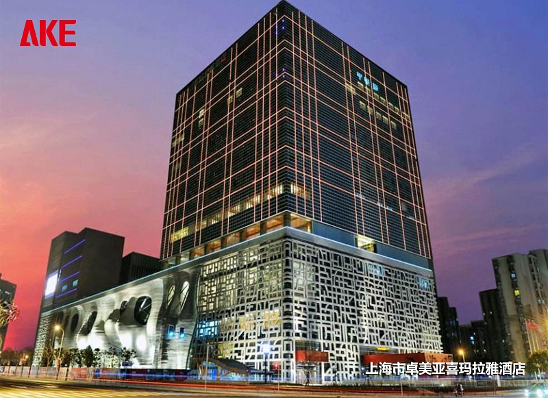 上海市卓美亚喜玛拉雅酒店屹立于上海浦东,由曾主持设计西班牙巴塞罗那体育馆和洛杉矶现代美术馆的国际著名建筑大师矶崎新先生设计,楼高21层,客房总数388间拥有5个餐厅及酒廊和两个共可容纳1330人的豪华宴会厅。