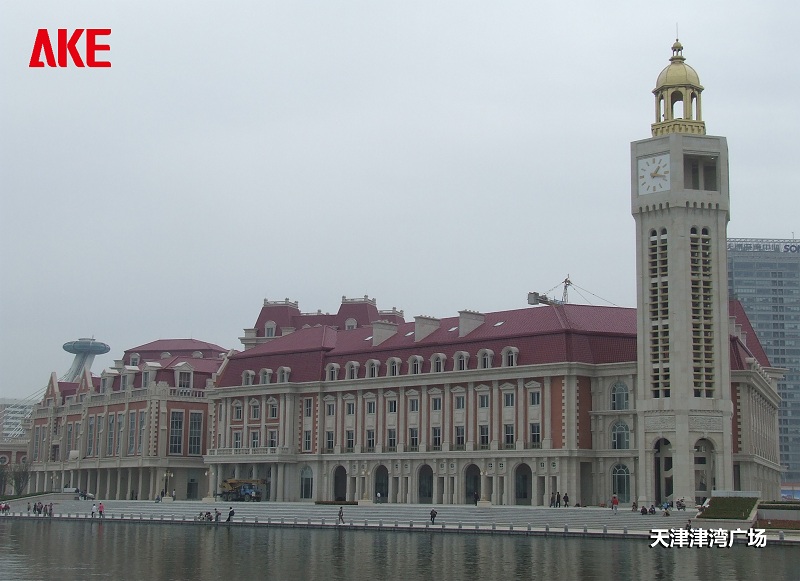 天津津湾广场位于和平区的一处海河河湾南岸,与天津站隔河相望,总占地面积12.5公顷,建筑面积约76万平方米。津湾广场空间的处理充分考虑到人、建筑、广场之间合适的比例和尺度关系,既满足游人的活动之需,又为人们提供了观赏建筑景观的良好视线。